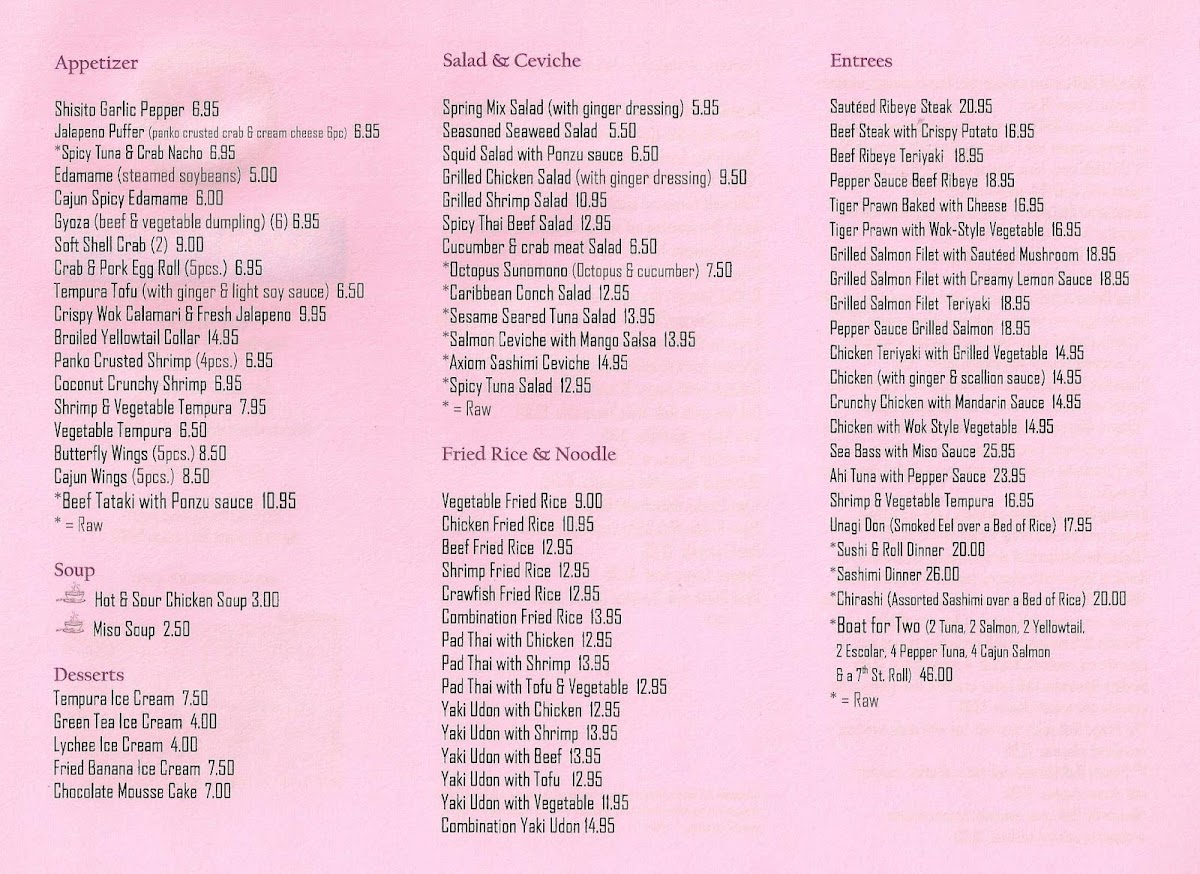 Vegetarian options shine as well, notably the acclaimed tofu, ensuring everyone finds something to enjoy. The atmosphere is enhanced by an impressive martini menu, with standout selections like the refreshing cucumber martini. With friendly staff and a welcoming ambiance, Sushi Axiom offers not just a meal but a memorable dining experience. Don’t miss their unique rolls, such as the Temptation and Hulen Rolls, that promise to tantalize your taste buds.